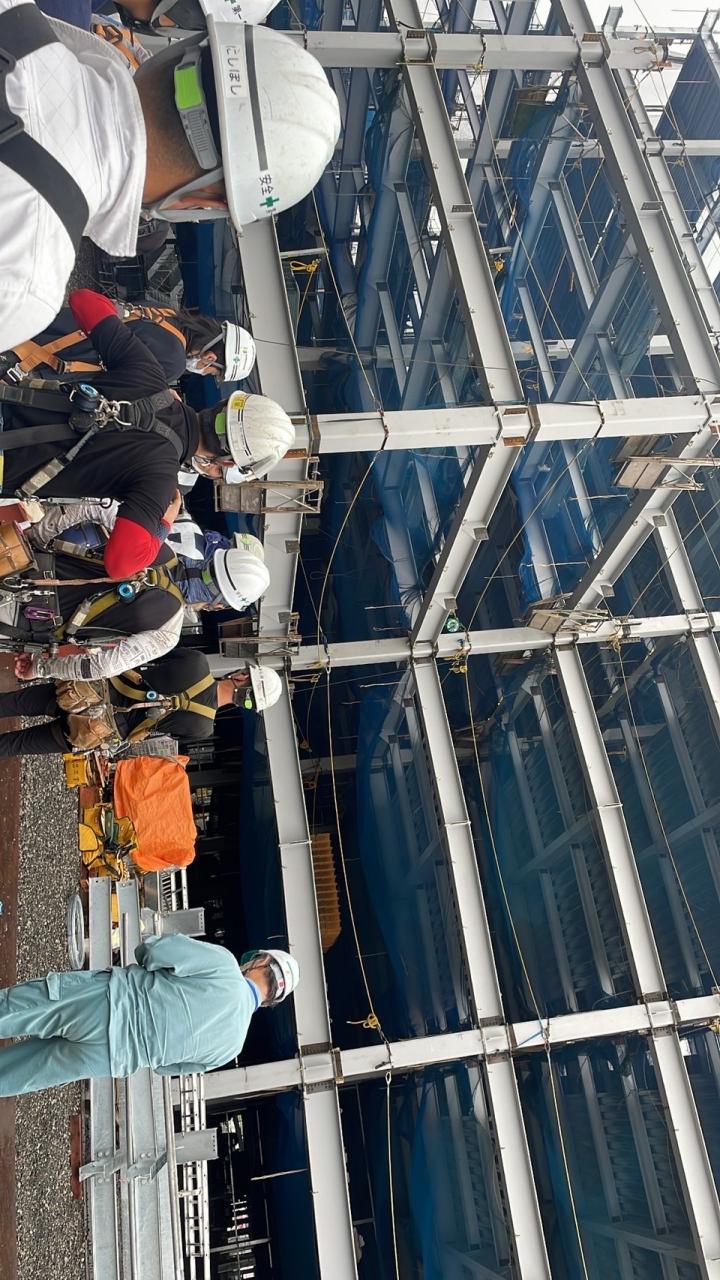 [Image.jpeg]お久しぶりの投稿です。 某現場の朝礼前の様子です。 建て方も残り1週間 約3ヶ月半位建て方してましたねー。 本締めのチェックも残ってますが最後まで無事故無災害で終わらせましょう。