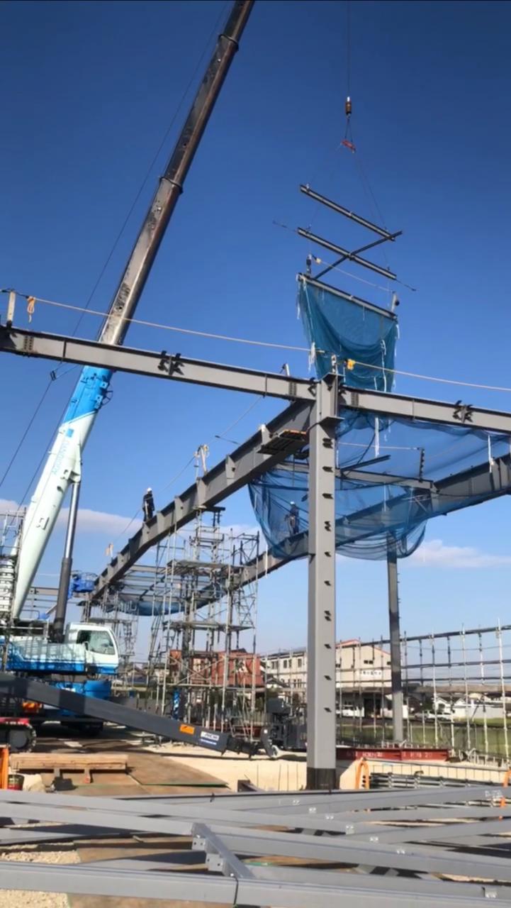 40m地組梁15t取付けの所です。 5枚つなぎの梁は初めてだったからワクワクしました。
